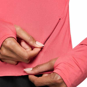 The top is tapered around the waist so that layering with other pieces is easier. A curved hem helps keep you covered through your stride. Plus, thumbholes let you extend your coverage and help hold the sleeves in place.