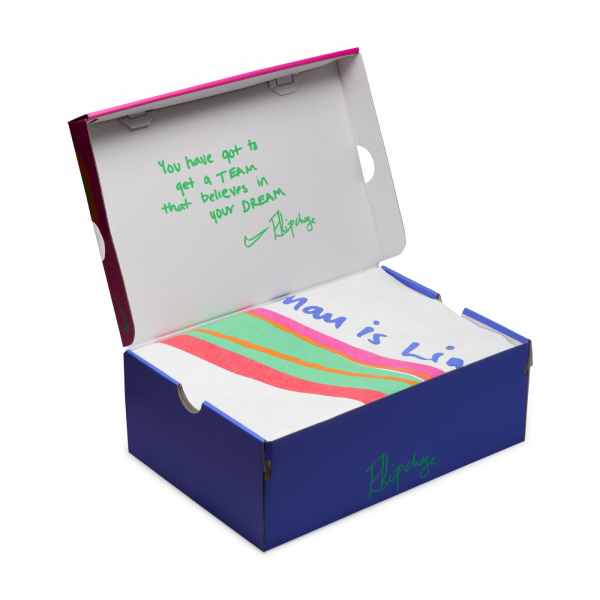 Whenever someone trains with Eliud Kipchoge, they're asked to plant a tree at his base camp to signify their growth. The sockliner graphics mimic that growth with branches moving forwards towards the front of the shoe. The Red Clay colour fade nods to the Kenyan dirt that stains the shoes when training. The font is a play on African trees that have fractal-like patterns on the surfaces.